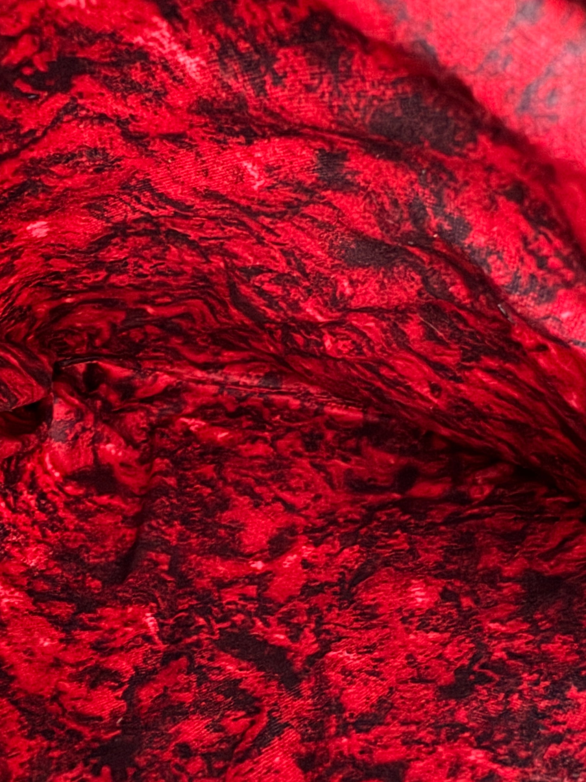 This skull and roses fabric features a garnet marble lining.