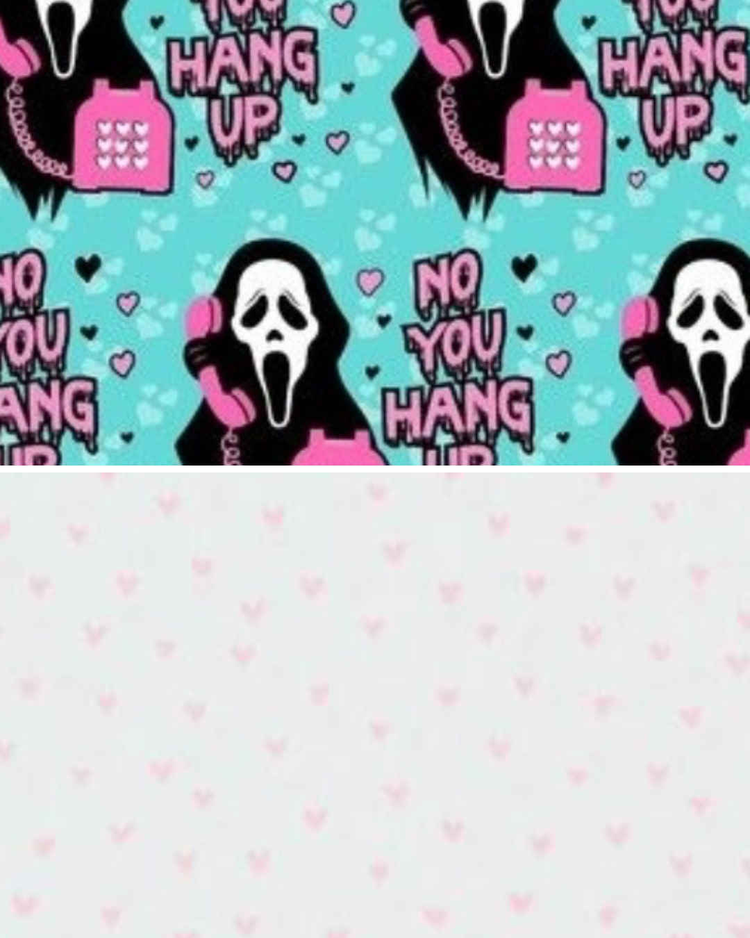 This cute but scary fabric features lining with white background and tiny pink love hearts.